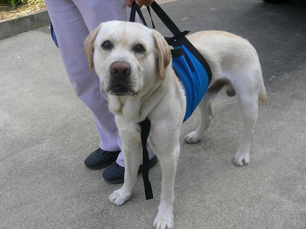 散歩のときに、歩行補助ハーネスを装着して少しの時間でも、歩行を支えてあげてください。